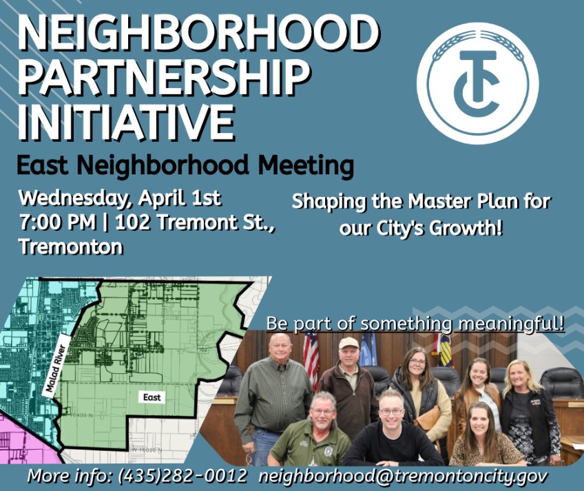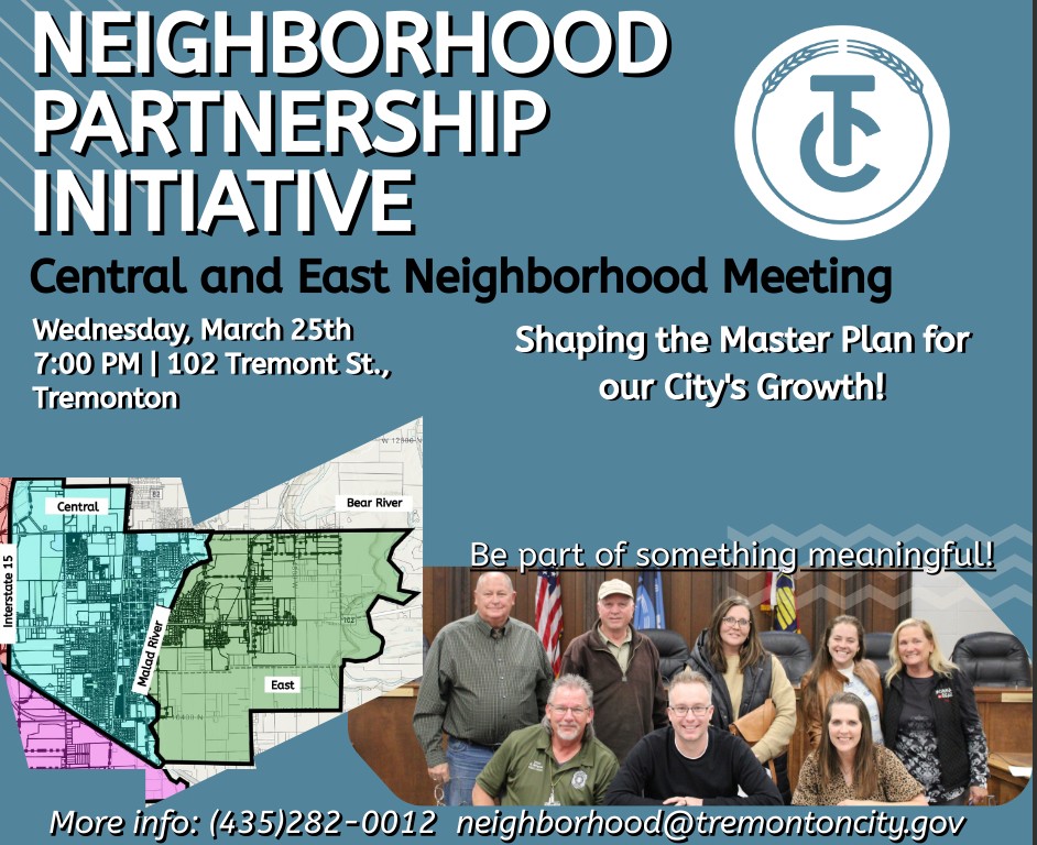 Tremonton City Office 102 South Tremont St., Tremonton, UtahMarch 25th at 7:00 pm in the City Office Building
