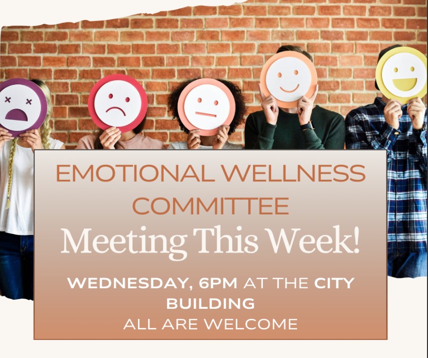 The Wellness Committee will meet on the first Wednesday of every month at 6:00 pm at the City Office Building.